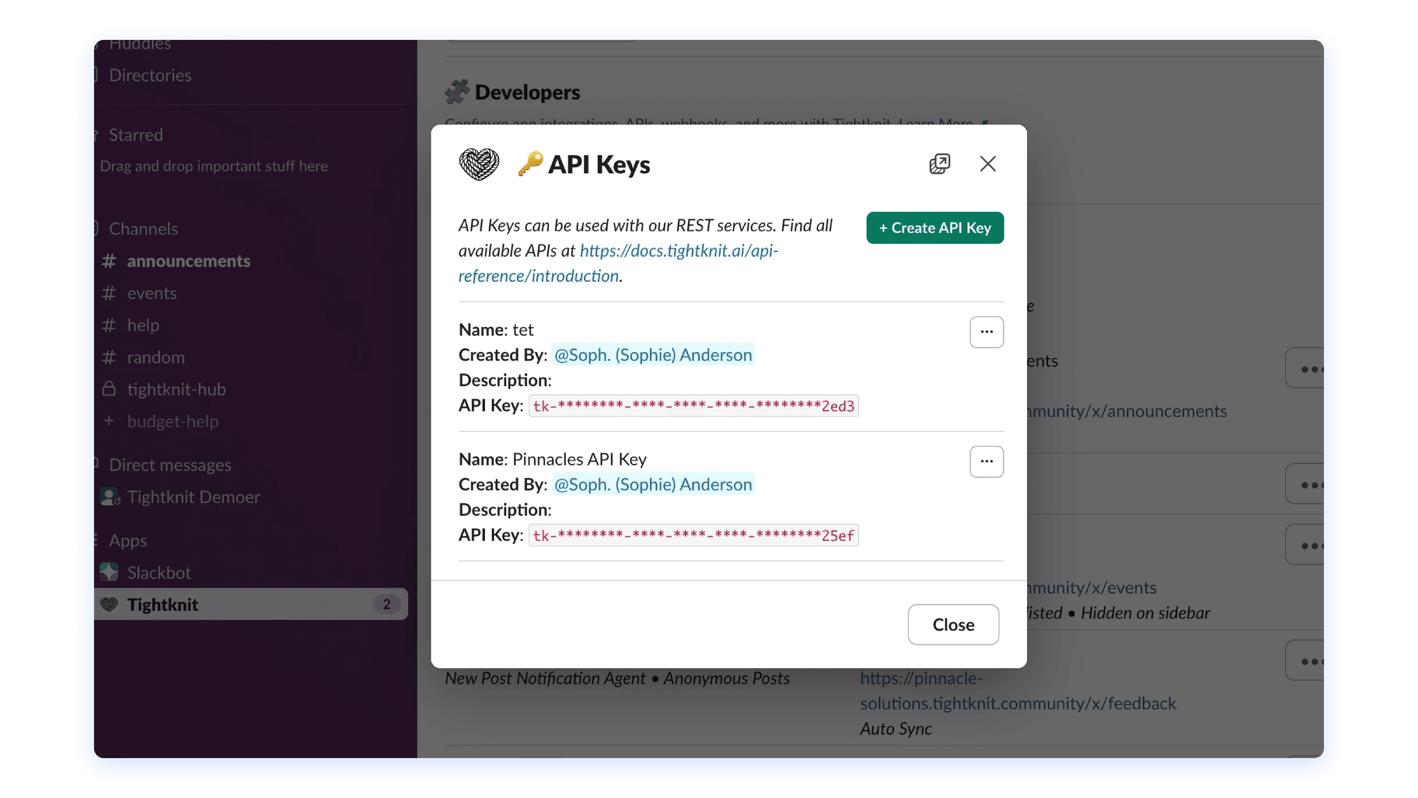 Programmatic access to community data and management endpoints.
