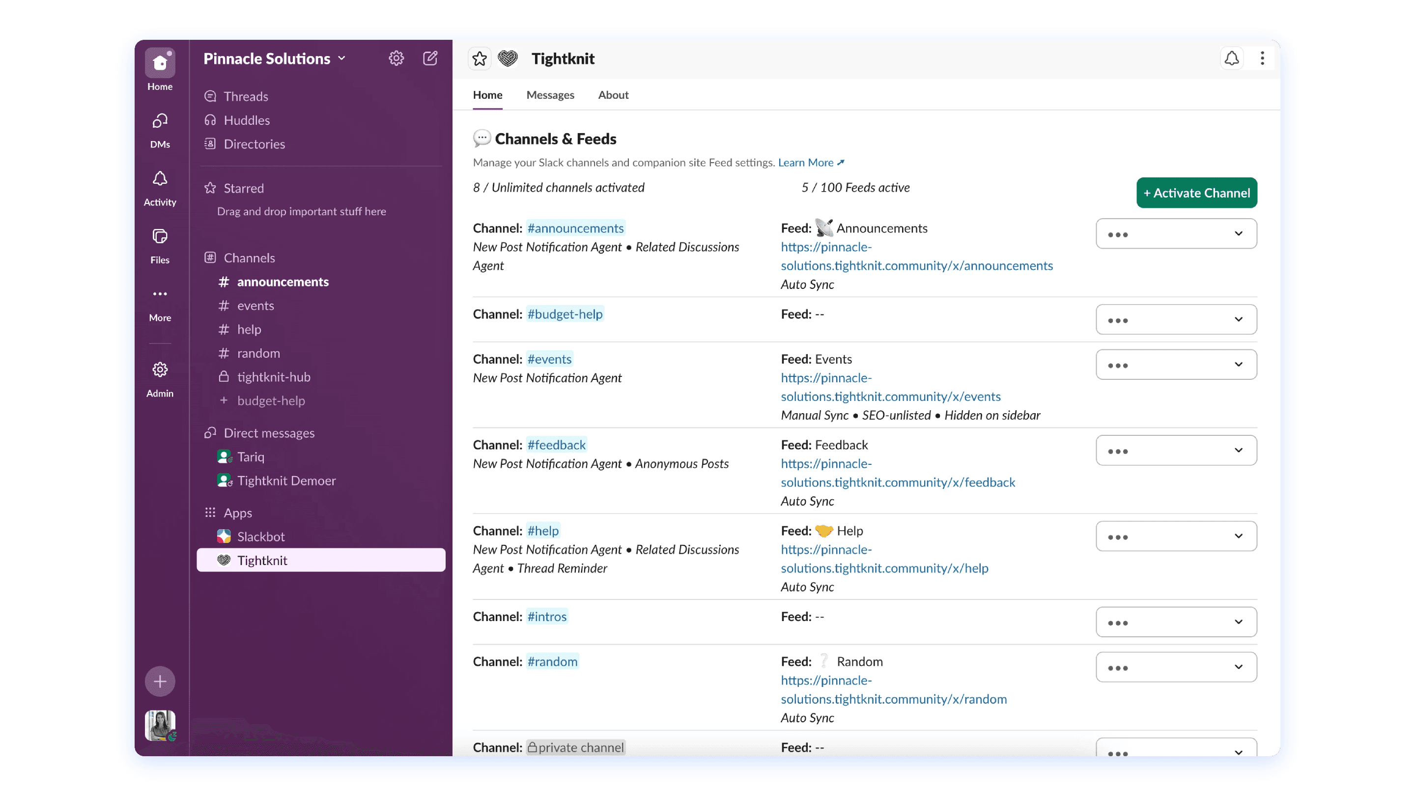 Create and manage curated feeds in Slack channels and on the companion site with posting controls.