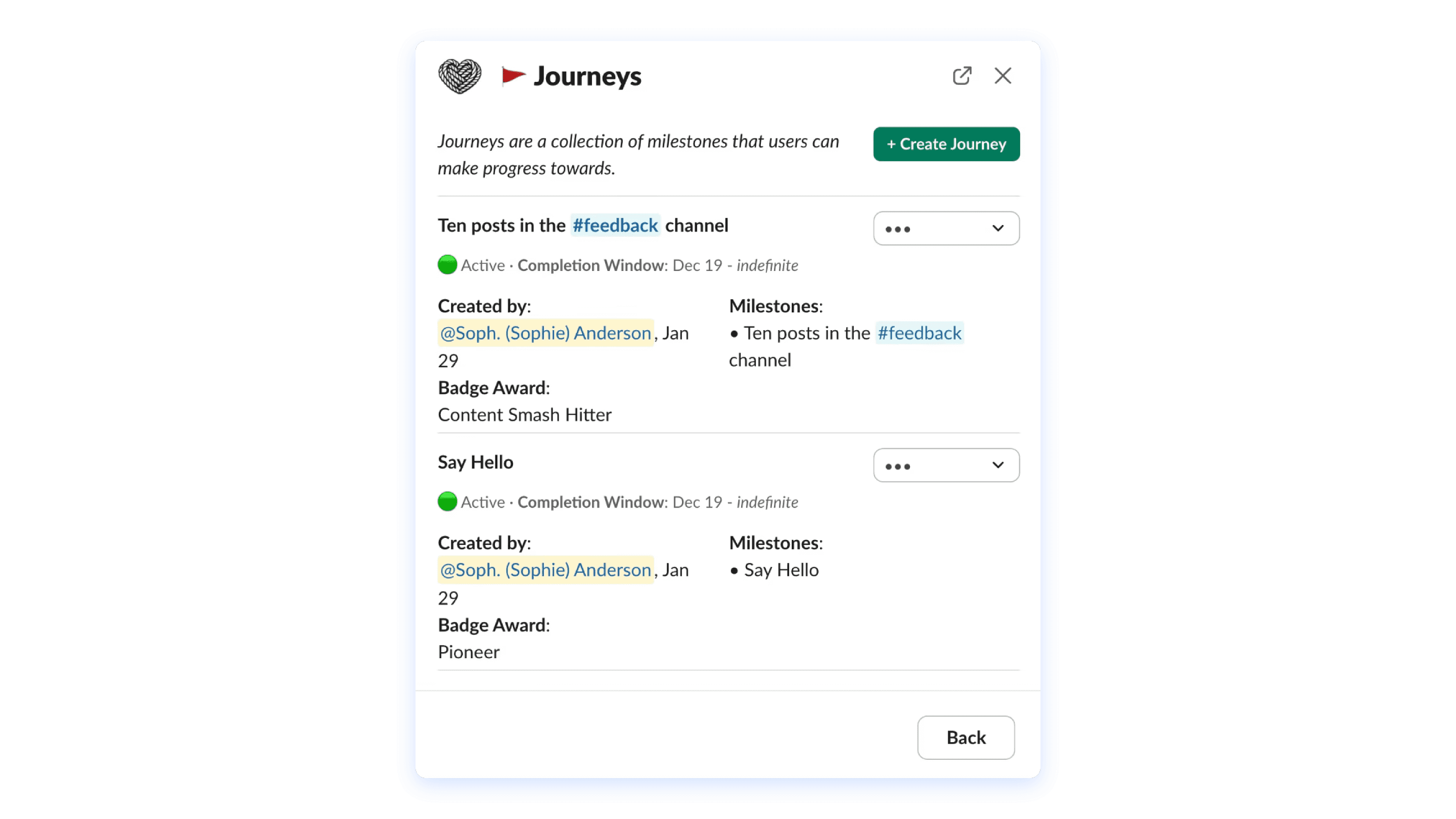 Progressive engagement paths with milestones to guide member behavior.