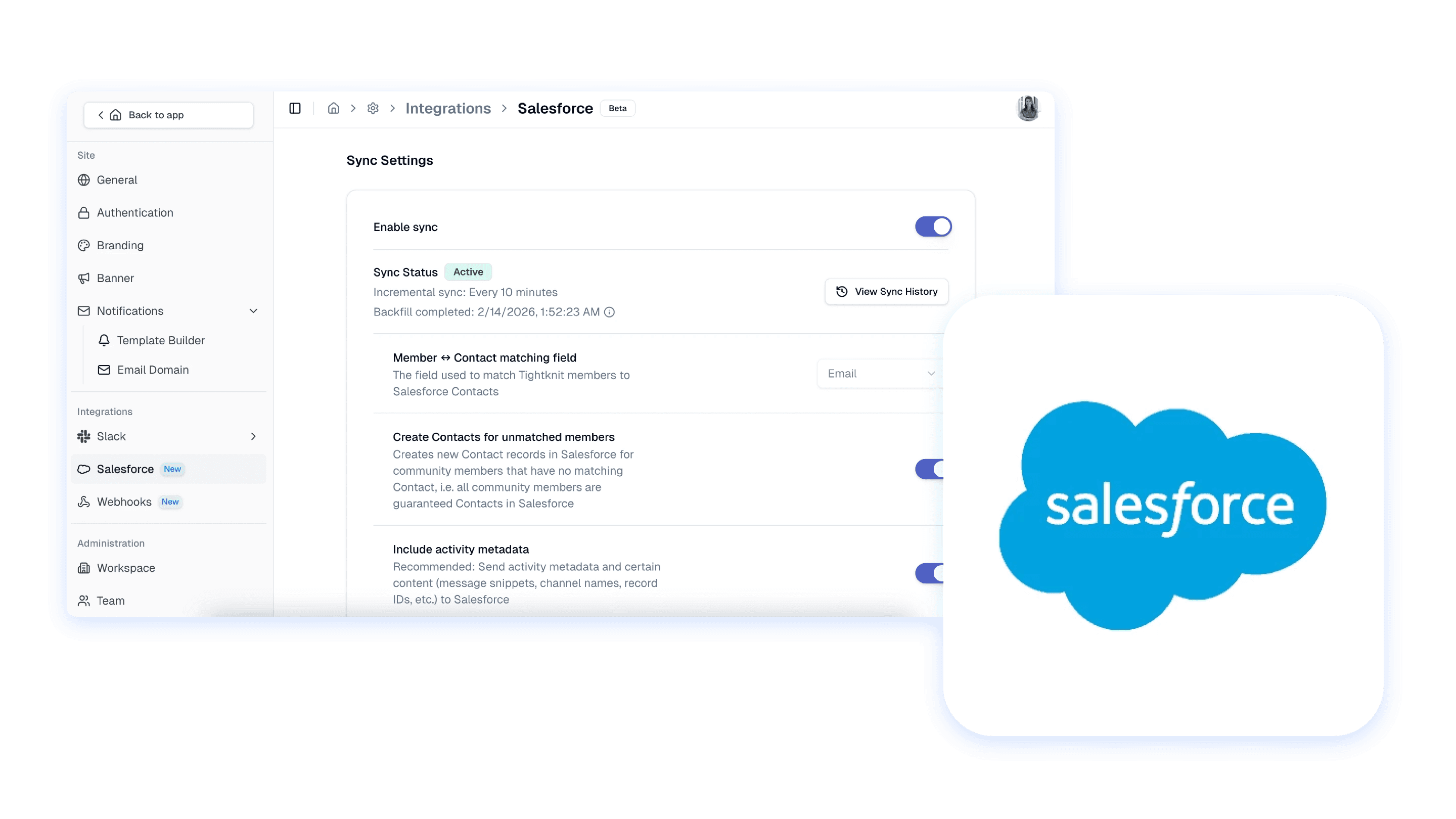Integration to surface Tightknit community content within Salesforce Experience Cloud.